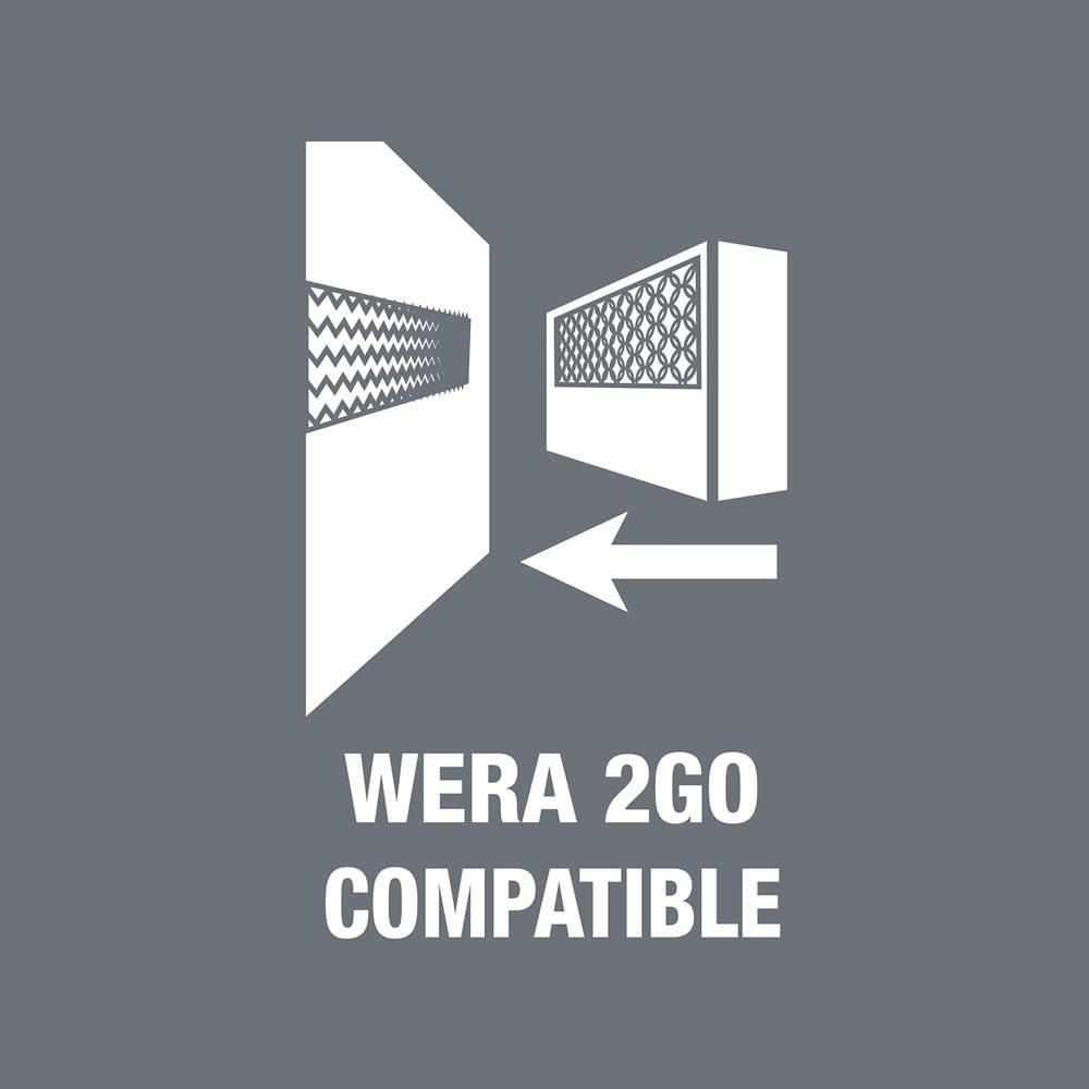 Wera’s stainless steel tools are vacuum-ice tempered and therefore have the hardness and strength properties required for screw connections. Industrial use is possible without restrictions. The pouch is suitable for attachment to walls, shelves, workshop trolleys, and the Wera 2go system thanks to the hook and loop fastener system on the back.